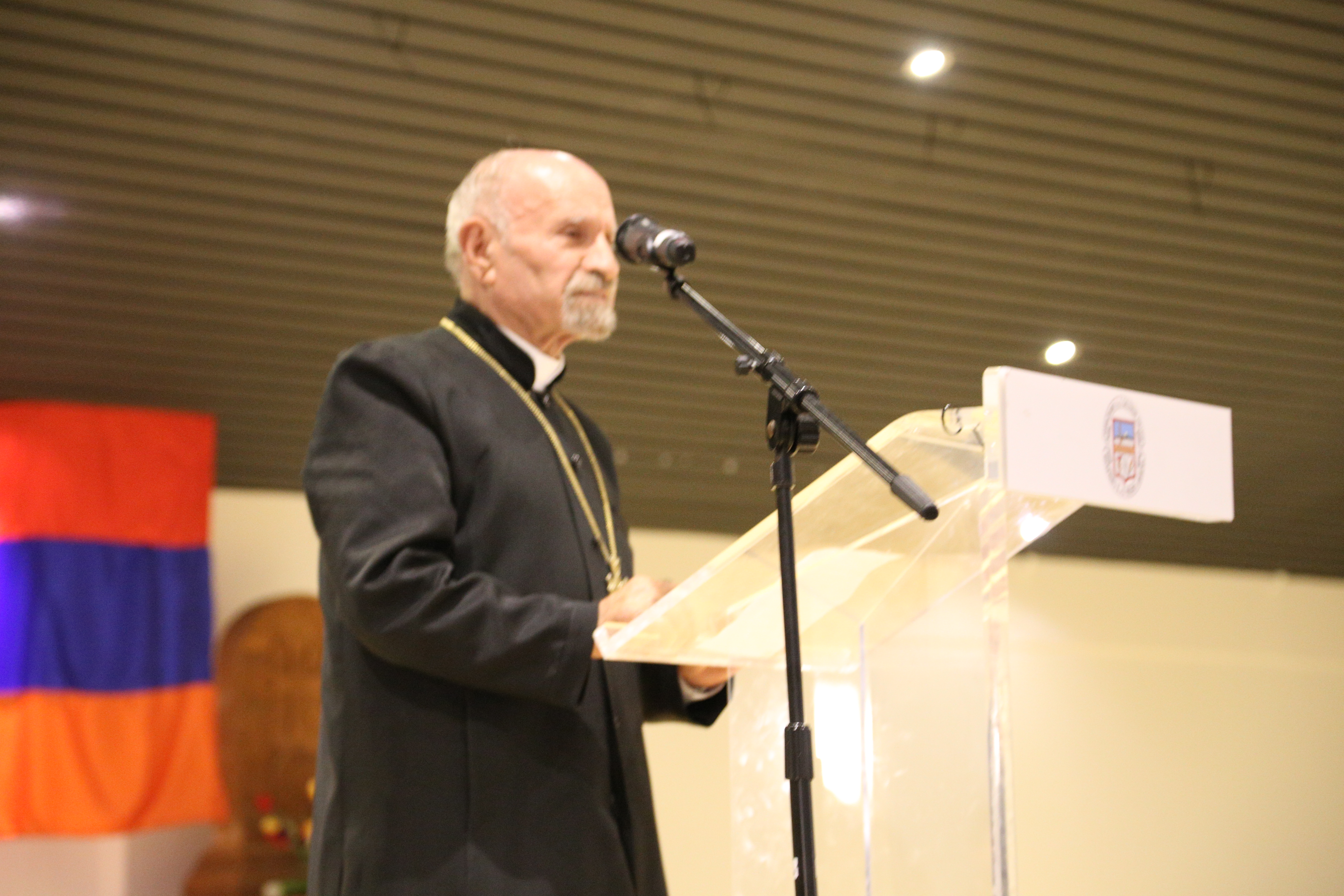Յայտագրի աւարտին, բեմ հրաւիրուեցաւ արժանապատիւ Տէր Նորայր աւագ Քհն. Բաթանեան, որ Սրբազան հօր շնորհաւորանքները փոխանցեց կազմակերպիչ մարմնին Մայիս 28ի խորհուրդը պատշաճօրէն նշելուն համար այս օտար ափերուն վրայ, ուր իւրաքանչիւր հայ կ'ապրի հայրենիքի կարօտով: Տէր հայրը վեր բռնեց մեր ժողովուրդի պատմութեան մէջ այս կարեւոր թուականը կերտող հայորդիներու կատարած սխրագործութիւնները, որոնց շնորհիւ երկար տարիներու ստրկութենէ ետք մենք ունեցանք մեր առաջին հանրապետութիւնը եւ կերտեցինք մեր առաջին անկախութիւնը: