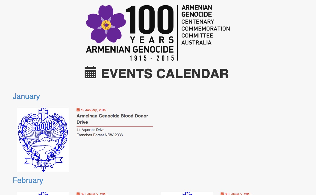 SYDNEY: The Armenian Genocide Centenary Commemoration Committee of Australia has announced the release of an Online Calendar dedicated to the events marking the Centenary of the Armenian Genocide in Australia.