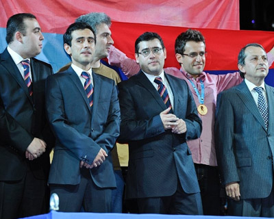Հայաստանի տղամարդկանց հաւաքականը, որ վերջին հանգրուանին 2.5-1.5 արդիւնքով պարտութեան մատնեց Հունգարիան, երրորդ անգամ ըլլալով դարձաւ աշխարհի ախոյեան: