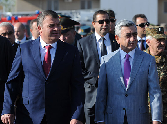 ԵՐԵՒԱՆ, «Ռիփորթ».- Նախագահ Սերժ Սարգսեան 19 Սեպտեմբերին ընդունած է պաշտօնական այցելութեամբ Հայաստան ժամանած Ռուսիոյ պաշտպանութեան նախարար Անաթոլի Սերտիւքովը, որ հանրապետութեան նախագահին հետ ներկայ գտնուած է «Փոխգործակցութիւն-2012» ՀԱՊԿի արագ արձագանգման հաւաքական ուժերու միացեալ զօրավարժութիւններուն: