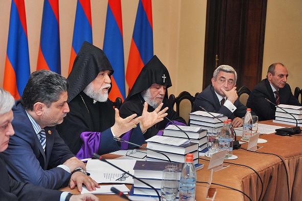 ԵՐԵՒԱՆ.- Երկուշաբթի, 30 Մայիսին, Հայաստանի կառավարութեան ընդունելութիւններու տան մէջ տեղի ունեցաւ Հայոց Ցեղասպանութեան 100ամեակին նուիրուած նախաձեռնութիւնները համակարգող պետական յանձնախումբի անդրանիկ նիստը՝ գլխաւորութեամբ Հայաստանի նախագահ Սերժ Սարգսեանի: