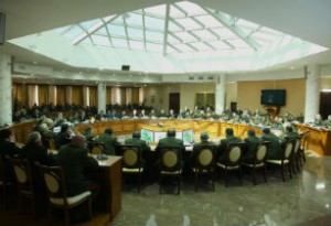ԵՐԵՒԱՆ.– Հայաստանի պաշտպանութեան նախարարութեան վարչական համալիրին մէջ 25 Ապրիլին տեղի ունեցած պաշտպանութեան նախարարին կից անձնակազմի հերթական նիստ՝ նուիրուած հակաօդային պաշտպանութեան կատարելագործման ուղիներուն: Նիստին նախագահած է Հայաստանի պաշտպանութեան նախարար Սէյրան Օհանեան:
