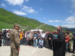 ԵՐԵՒԱՆ.– Ամենայն Հայոց Գարեգին Բ. կաթողիկոսին օրհնութեամբ եւ Մայր Աթոռ Սուրբ Էջմիածինի Հայեցակարգային հարցերու գրասենեակի տնօրէն Բագրատ եպս. Գալստանեանի առաջնորդութեամբ 2-4 Մայիսին շուրջ 140 հոգի՝ հոգեւորականներ, լրագրողներ, տարբեր կազմակերպութիւններ ներկայացնող երիտասարդներ ուխտ գացած են Տաւուշի մարզի սահմանամերձ գիւղերը՝ Այգեպար, Մովսէս, Չինարի, Ներքին Կարմիրաղբիւր եւ Բերդ քաղաքը: Նպատակն էր բաժնեկցիլ սահմանին վրայ ապրող մարդոց հոգերն ու յոյզերը: