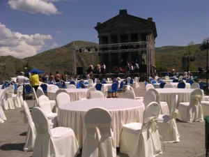 Բայց եւ այնպէս խնճոյքի համար նախատեսուած սեղաններն ու սարքաւորումները տեղադրուած էին ժամեր առաջ եւ առաւօտէն իսկ Գառնի այցելողները ստիպուած էին հազարամեայ հեթանոսական տաճարի տեսարանը համադրել ժամանակակից խնճոյքի սեղաններուն հետ: