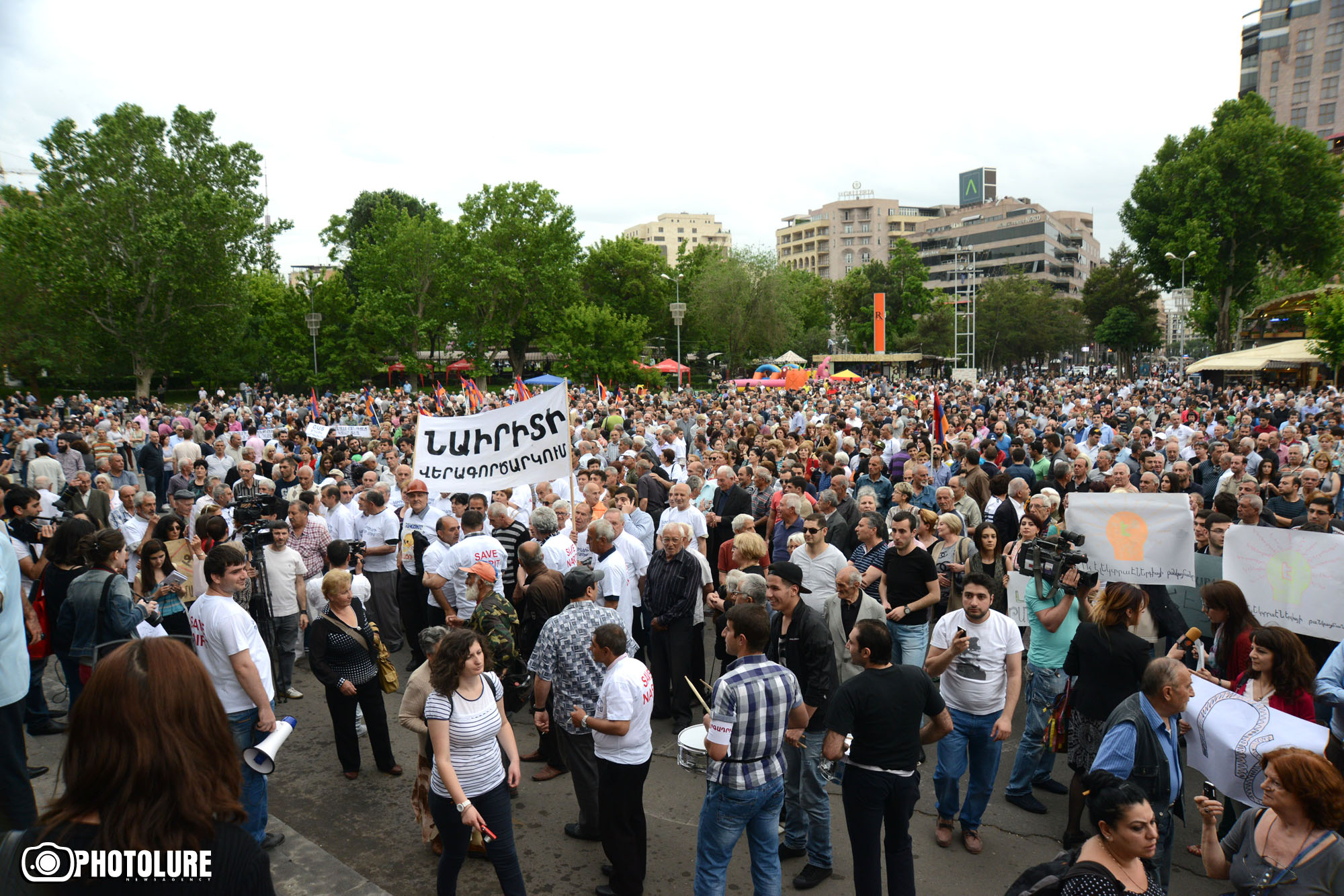 ԵՐԵՒԱՆ - Ազատութիւն հրապարակին վրայ սկսած է բողոքի ցոյց՝ ելեկտրականութեան սակի բարձրացման դէմ։ Ցոյցը բազմամարդ էր: Կազմակերպիչները յայտարարած են, որ իրենց միացած են Վանաձորը, Սիսիանը, Աշտարակը, Ճամբարակը: