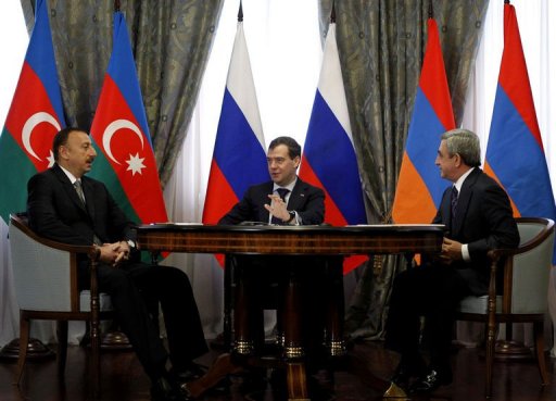 Russian President Dmitry Medvedev, Armenian President Serge Sarkisian and Azerbaijan’s Ilham Aliyev released a statement stating their intention to “resolve all controversial questions in a peaceful manner” after meeting in Sochi.