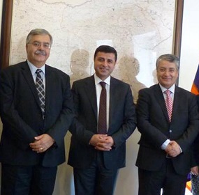 Hagop Der-Khachadourian, Turkey’s Kurdish-leaning Peace and Democracy Party (BDP) co-chairman Salaheddin Demirtas, BDP foreign relations director who is elected from Van, Nazmi Gur pictured in October, 2013