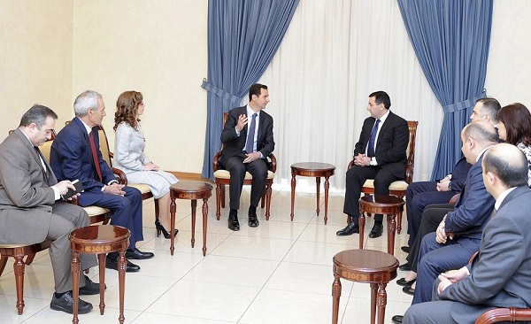 President al-Assad voiced his appreciation of the objective position of President Sarkisian that is supportive of Syria’s stability, highlighting the role lawmakers could play in revealing the threats of terrorism and extremism at international forums and unifying efforts to face these threats.