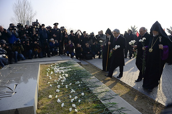 Armenia's President Serzh Sarkisian lays flowers at a memorial at Armenia's Yerablur Military Pantheon. Jan. 28, 2015. (Photo: official publication)
