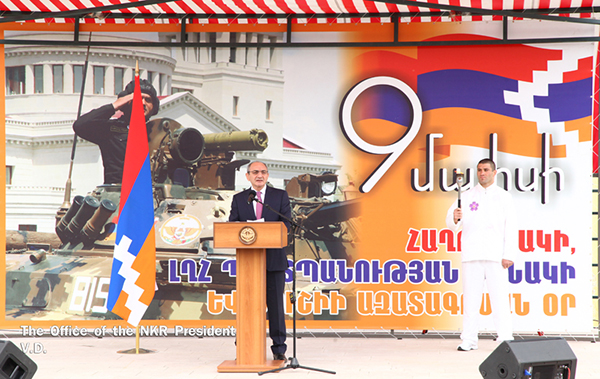 Artsakh’s President Bako Sahakian speaks during a torch lighting ceremony in Shoushi for the 6th Pan-Armenian Games. May 8, 2015. (Photo: official publication)
