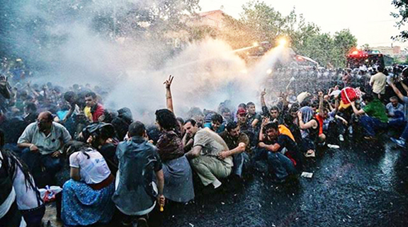 Police deploy water cannons on June 23 to disperse protesters demanding an end to electricity price hikes