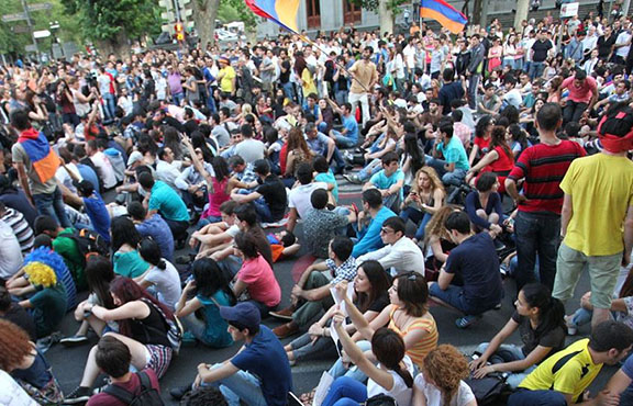 Armenians demonstrate on Yerevan’s Marshal Bagramian Avenue against a controversial electricity price hike (Source: Photolure)