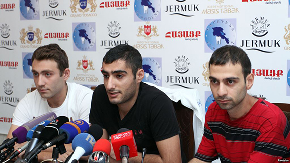Leaders of the No To Plunder movement at a press conference in Yerevan on August 28, 2015 (Source: Photolur)