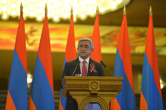 President Serzh Sarkisian delivers a congratulatory message in Yerevan on Armenia’s 24th Independence Day