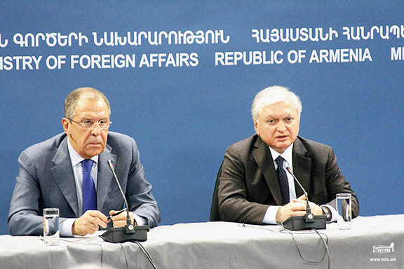 Russian Foreign Minister Sergei Lavrov (left) with Armenia’s Foreign Minister Edward Nalbandian (MFA photo)