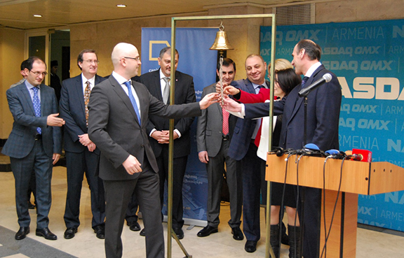 YEREVAN — During an official ceremony on January 27, NASDAQ OMX Armenia marked the successful launch of the first securitized bond issuance in Armenia and announced the listing of these bonds at the stock exchange for the secondary market trade. This landmark transaction was made possible through the joint efforts of USAID, Capital Investments, and universal credit organizations.