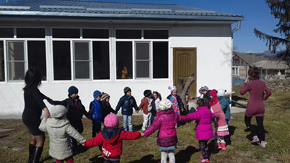 The public was invited for an official opening. Thirty kindergarten children from the village, along with their parents, gathered for the festive dedication and to hear the team members express their appreciation for the opportunity to serve. The mayor’s representative read a proclamation letter with the message that this was their kindergarten and it needed the support and involvement of the entire community. Finally, the children gathered in a circle holding hands while two of them had the honor of cutting the ribbon in front of the kindergarten door.