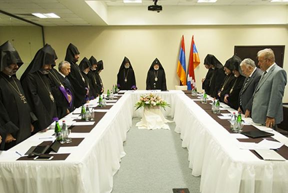 At the opening of the meeting, His Holiness conveyed his blessings to the clergy and lay members of the Council. He also conveyed his personal appreciation to Artsakh President Bako Sahakian and His Eminence Archbishop Pargev Martirosyan, Primate of the Diocese of Artsakh for the invitation to hold the SSC meeting in Artsakh on the occasion of the 25th anniversary celebrations of the independence of Artsakh. His Holiness stressed the importance of holding the Council meetings in various Armenian dioceses, which will promote awareness and further strengthen the spiritual life of the communities.