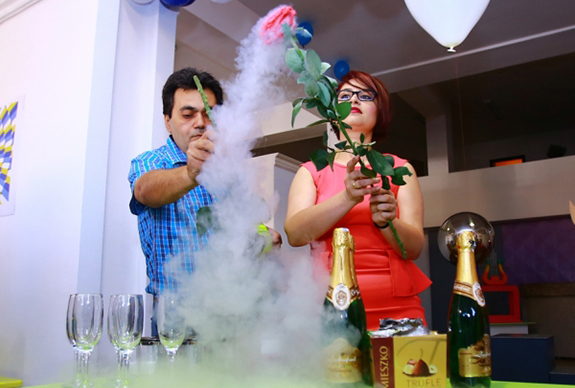Little Einstein Director Marina Grigoryan and founder Artur Petrosyan perform experiments an experiment