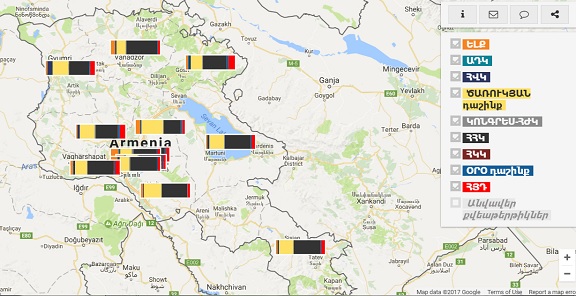 The “Yelk” Alliance led by parliament member and opposition activist Nikol Pashinyan will occupy nine seats, while the Armenian Revolutionary Federation will be represented in the legislature with seven seats.