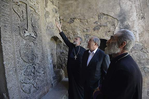 President Sarkissian also visited Artsakh’s Dadivank monastery. He toured the ancient monastery with Archbishop Martirosyan and spoke with tourists and visitors there.