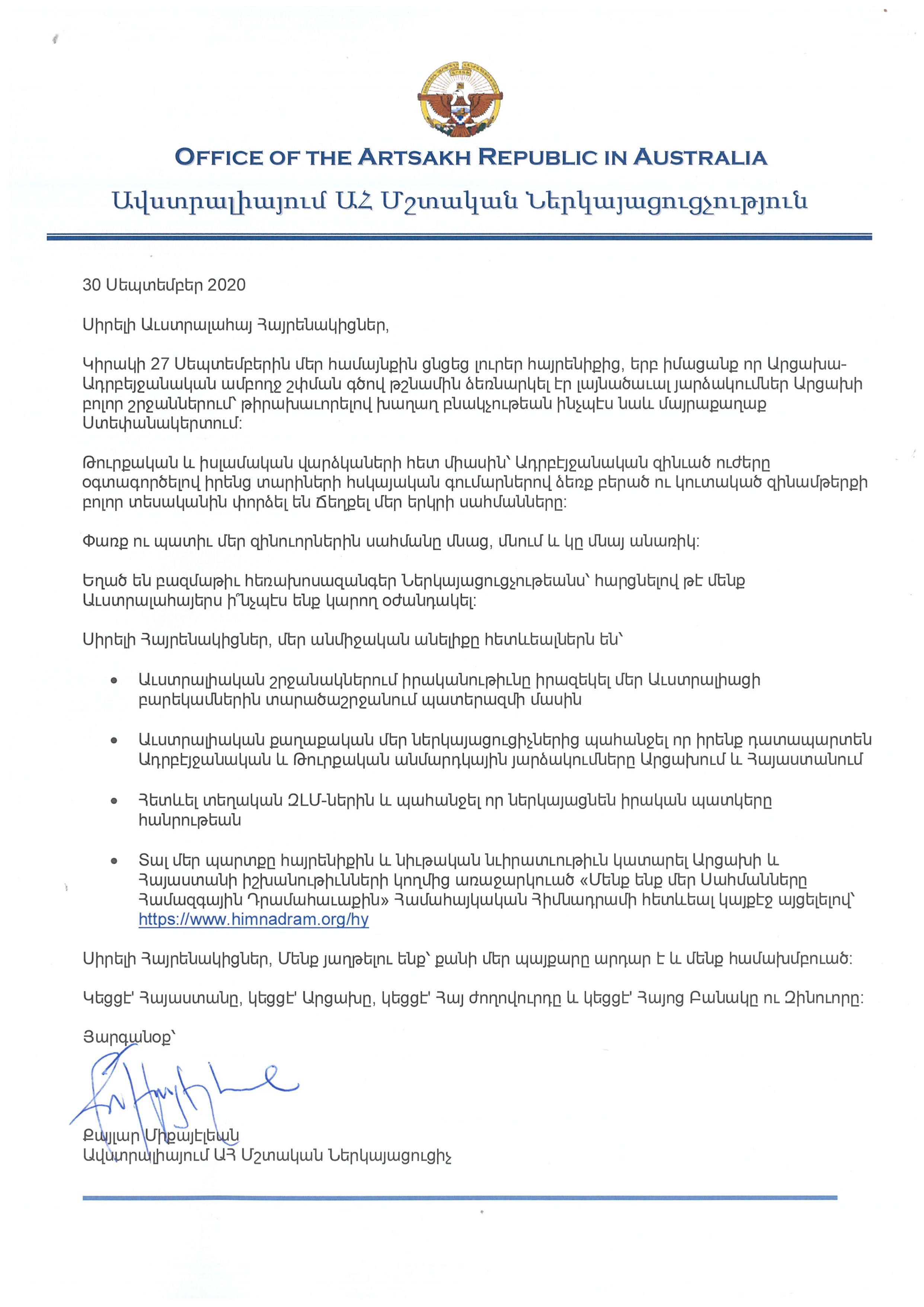 By armenia.com.au | Thursday, 01 October 2020
