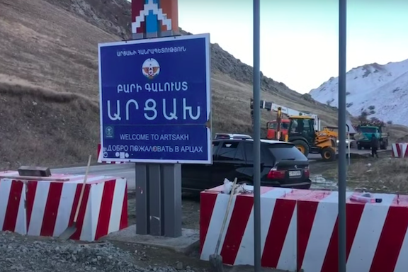 At midnight Wednesday local time the entrance to Artsakh along the famed Vardenis-Mardakert Highway was closed. Barricades emblazoned with the Armenian tri-color lined the sides of the highway, while a sign welcoming visitors to Artsakh remained standing, despite earlier reports that it was being dismantled. The sign will presumably serve as a check point.