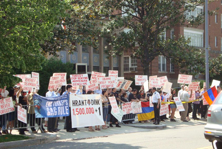 Following their disgraceful performance, Turkish protesters were welcomed into the Turkish Embassy compound. The Washington Turkish scene came in stark contrast to images from Istanbul, Turkey where a growing number of scholars held solemn vigil commemorating the Armenian Genocide and calling for justice for this crime.