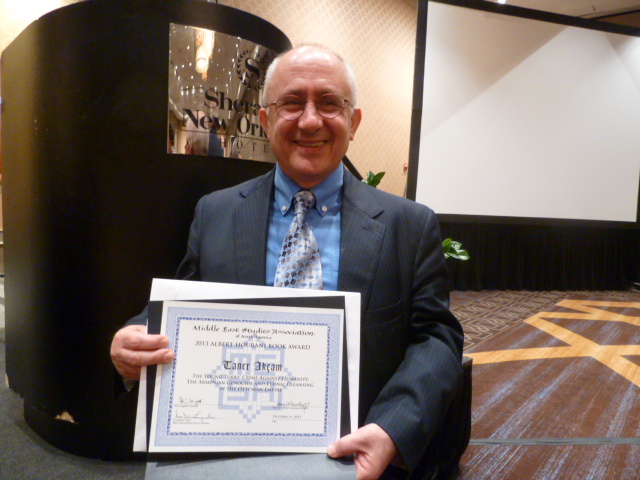 MESA’s statement reads: “We award the 2013 Hourani Book Prize to Taner Akçam’s for The Young Turks’ Crime Against Humanity: The Armenian Genocide and Ethnic Cleansing in the Ottoman Empire, a compelling work of scholarship that provides the strongest historical argument to date regarding the Armenian Genocide. Based solely on Ottoman documents, Professor Akçam details the motives, the planning, the communications, the organization and the execution of the Ottoman demographic policy. In the field of genocide studies it broadens the concept of genocide to include the forced assimilation of children and women and the confiscation of property. It sets a new standard for scholarship in a controversial field.”
