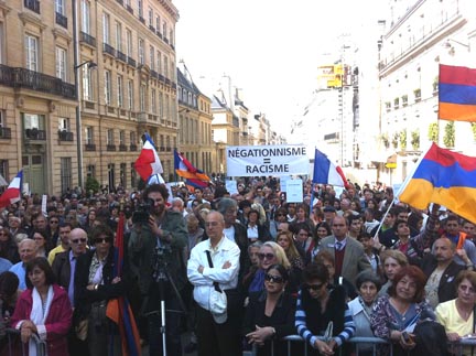 The French-Armenian community held a protest in front of the senate building, days after its representatives met with France’s President Nicolas Sarkozy who promised his government would not interfere in the vote.