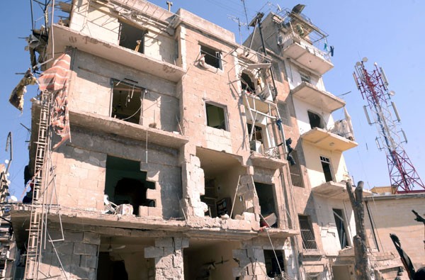 One of the buildings damaged by the explosion (Photo distributed by SANA)