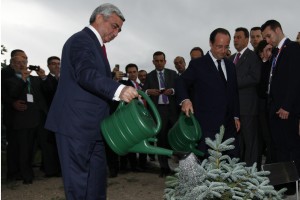 ԵՐԵՒԱՆ.- Հայաստանի Հանրապետութիւն ժամանած Ֆրանսայի նախագահ Ֆրանսուա Հոլանտ Երկուշաբթի օր նախագահ Սերժ Սարգսեանի ընկերակցութեամբ այցելեց Ծիծեռնակաբերդի յուշահամալիր, ծաղկեպսակ դրաւ Հայոց Մեծ Եղեռնի զոհերու յուշարձանին ու խոնարհեցաւ Հայոց Ցեղասպանութեան զոհերու յիշատակը յաերժացնող անմար կրակին մօտ: Ֆրանսայի նախագահը նաեւ եղեւնի տնկեց յուշահամալիրի Յիշողութեան պուրակին մէջ: