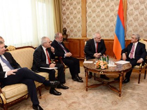ԵՐԵՒԱՆ, «Փանորամա».– Նախագահ Սերժ Սարգսեան 16 Մայիսին ընդունած է ԵԱՀԿ Մինսկի խումբի համանախագահներ ԵԱՀԿ Իկոր Փոփովը, Ժագ Ֆորը, Ճէյմզ Ուորլիքը եւ ԵԱՀԿի գործող նախագահի անձնական ներկայացուցիչ, դեսպան Անճէյ Քասփըրչիքը։ Հանդիպումին մասնակցած է նաեւ յառաջիկային նշանակուելիք ֆրանսացի նոր համանախագահ Փիեռ Անտիոն, զոր Ժագ Ֆորը հանդիպման սկիզբը ներկայացուցած է Հայաստանի նախագահին։