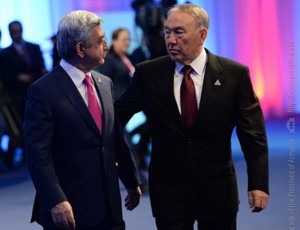 ԵՐԵՒԱՆ, «Նիուզ».– Ղազախստանի նախագահ Նուրսուլթան Նազարպաեւ Աստանայի մէջ յայտարարած է, որ Հայաստանի՝ Մաքսային միութեան անդամակցելու վերաբերեալ կայ նրբութիւն մը, որ կը վերաբերի Լեռնային Ղարաբաղին։ Հայաստանի նախագահին ուղղելով իր խօսքը՝ ան ըսած է. «Կայ տհաճ նիւթ մը. որպէսզի չգրգռենք Ատրպէյճանի մէջ ընկերոջ մը (Իլհամ Ալիեւին), դուք ինչպէս որ անդամակցած էք Առեւտուրի համաշխարհային կազմակերպութեան, պէտք է Եւրասիական տնտեսական միութեան ալ անդամակցիք ՄԱԿի կողմէ ճանչցուած սահմաններով (առանց Լեռնային Ղարաբաղի եւ նախկին Ատրպէյճանի ԽՍՀ յարակից շրջաններու)»։