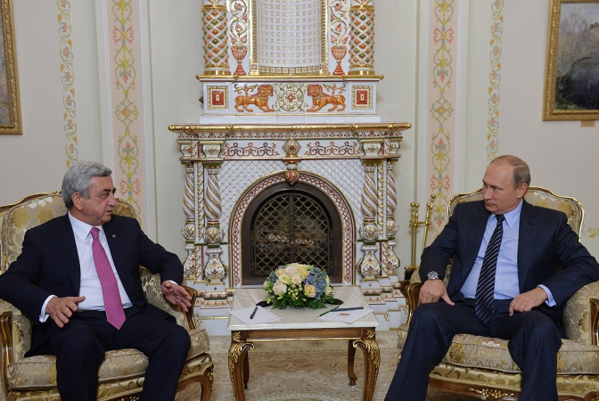 Նախագահի աշխատակազմի տեղեկատուութեան եւ հասարակութեան հետ կապերու վարչութեան համաձայն՝ 8 Սեպտեմբերին նախագահ Սերժ Սարգսեան հանդիպում ունեցած է Ռուսիոյ նախագահ Վլատիմիր Փութին հետ՝ իբրեւ օրակարգային նիւթ ունենալով հայ-ռուսական երկկողմանի գործակցութեան առնչուող հարցեր: Նախագահները քննարկած են երկու երկիրներու տնտեսական, քաղաքական, մարդասիրական եւ այլ ոլորտներուն մէջ գործակցութիւնը: