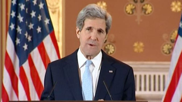 Քերի շեշտեց. <<Թէ՛ Միացեալ Նահանգները, թէ՛ Ռուսիան կ՛ուզեն Սուրիոյ մէջ <<Իսլամական պետութիւն>>ը պարտութեան մատնել, սակայն Ուաշինկթընի կարծիքով՝ Մոսկուայի կողմէ Սուրիոյ նախագահ Պաշշար Ասատի աջակցութիւնը կը ներգրաւէ օտար զինեալներ, որոնք Ասատի հեռացումը կ՛ուզեն>>: