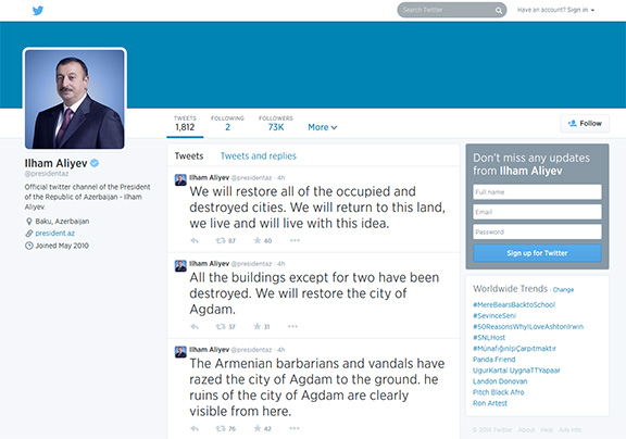 In more than 60 tweets, Aliyev, dubbed his “enemy” as “Armenian barbarians and vandals,” and declared: “The war is not over. Only the first stage of it is. But the second stage may start too.”