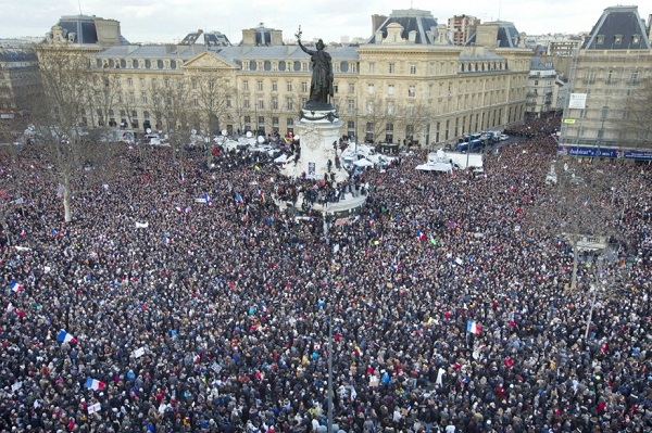 An estimated one and a half million people marched through the streets of Paris on Sunday, congregating at the Place de la République (pictured). (Photo: Peter Dejong AP)