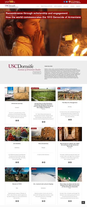LOS ANGELES—The University of Southern California’s Institute of Armenian Studies has launched a global directory of events — Year100.org — to boost awareness of the variety of publications, conferences and other events and activities, marking the centennial of the Armenian Genocide, and thus augment their impact.