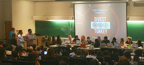 RIVERSIDE, Calif.—The Associated Student Body Government of the University of California, Riverside on Wednesday voted unanimously to divest approximately $72.6 million in bonds and holdings in the Turkish government.