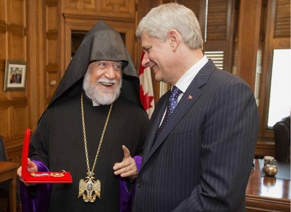 During this visit, His Holiness Aram I also decorated Stephen Harper with the Prince of Cilicia medal, the highest insignia of the Catholicosate of Cilicia.