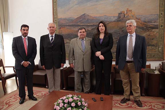 President of the parliament of Greece, Zoe Konstantopoulou, meets with representatives of the European Armenian Federation for Justice and Democracy, the Armenian National Committee of Greece, and ARF – Dashnaktsutyun representatives (Source: Azad Armenian Daily, Athens)