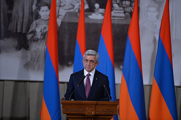 President Serzh Sarkissian addresses attendees of the 12th symposium of the International Association of Genocide Scholars in Yerevan (Source: Office of the President of the Republic of Armenia)