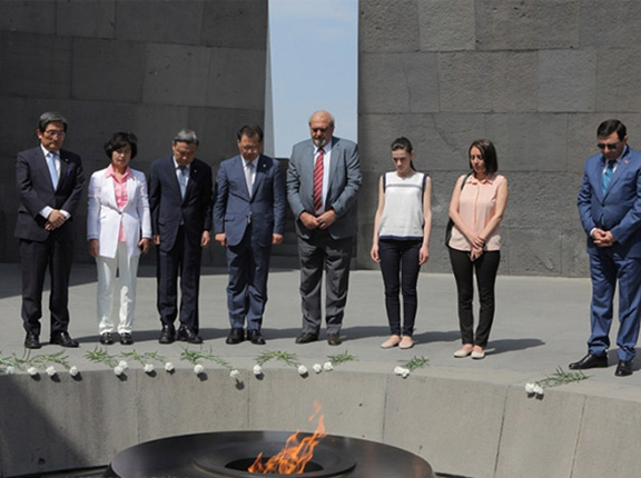 YEREVAN—A delegation from the South Korea-Armenia Friendship Group of the National Assembly of South Korea is currently in Armenia on an official visit. Lead by parliament member Noh Young-Min, the delegation visited the Armenian Genocide Memorial in Yerevan and met with the President of the National Assembly of Armenia, Galust Sahakyan.
