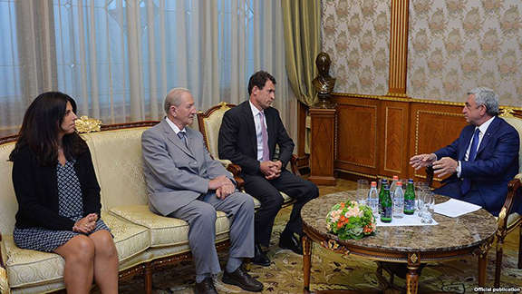 President Serzh Sarkisian (R) meets with legal experts from the Council of Europe’s Venice Commission in Yerevan on August 24, 2015 (Source: RFE/RL)