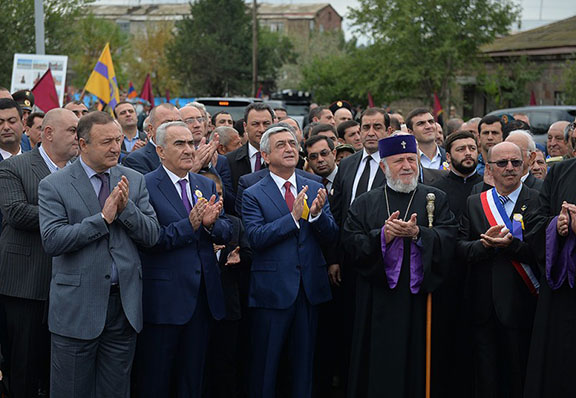 President Serzh Sarkisian attends a ceremony dedicated to the 2700th anniversary of Etchmiadzin’s founding (Source: Public Radio of Armenia)