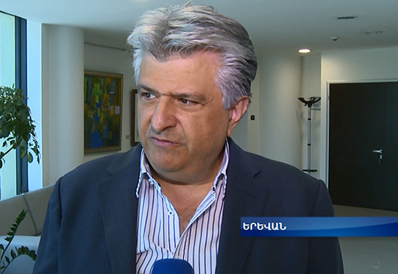 Vartan Sirmakes speaks to reporters while in Yerevan earlier this year (Source: 1TV Public TV of Armenia)
