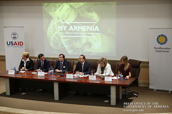 Representatives of USAID, the Smithsonian Institute, and other government and private sector groups discuss the newly revealed “My Armenia” Project (Source: Gov.am)