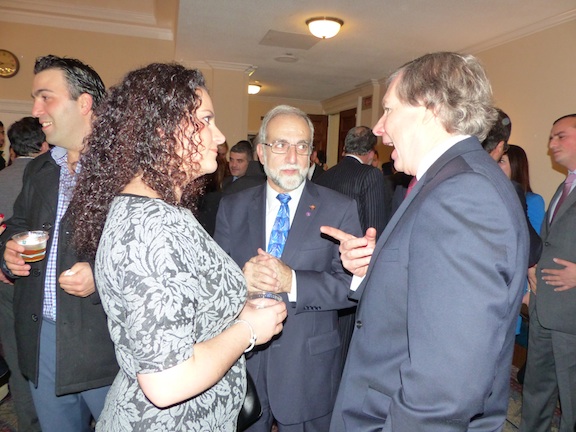 Westbrook, Maine City Councilwoman and Baku prgrom survivor Anna Astvatsaturian Turcotte and ANCA Chairman Ken Hachikian chat with OSCE Minsk Group Co-Chair, Ambassador James Warlick during the Congressional event marking Artsakh’s Independence