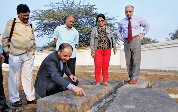 Ambassador of the Republic of Armenia, Armen Martirosyan, along with officials of the State Archaeology and Museums Department at the Armenian Cemetery in the old city. (Source: The Hindu)